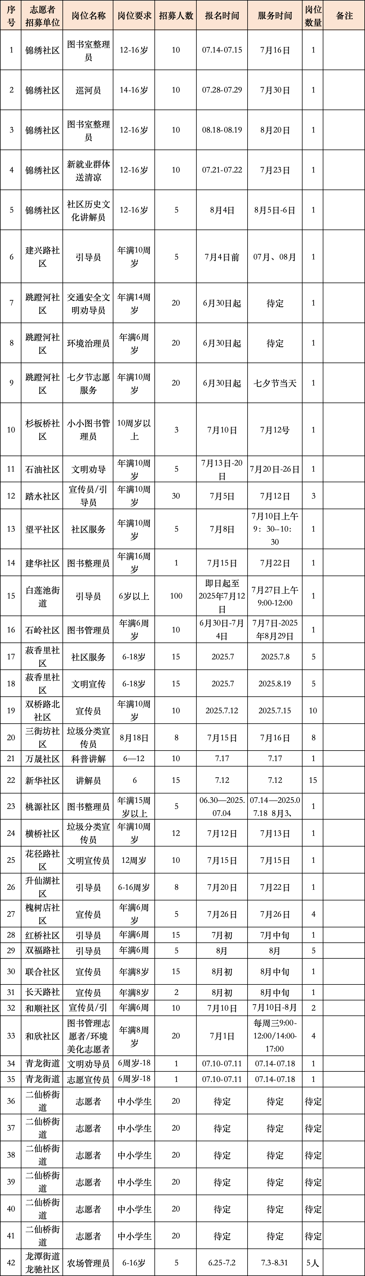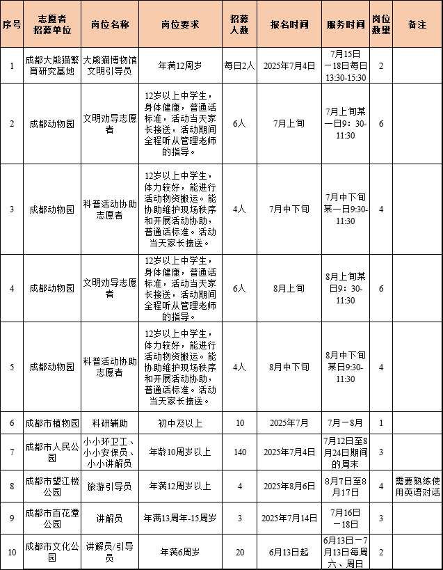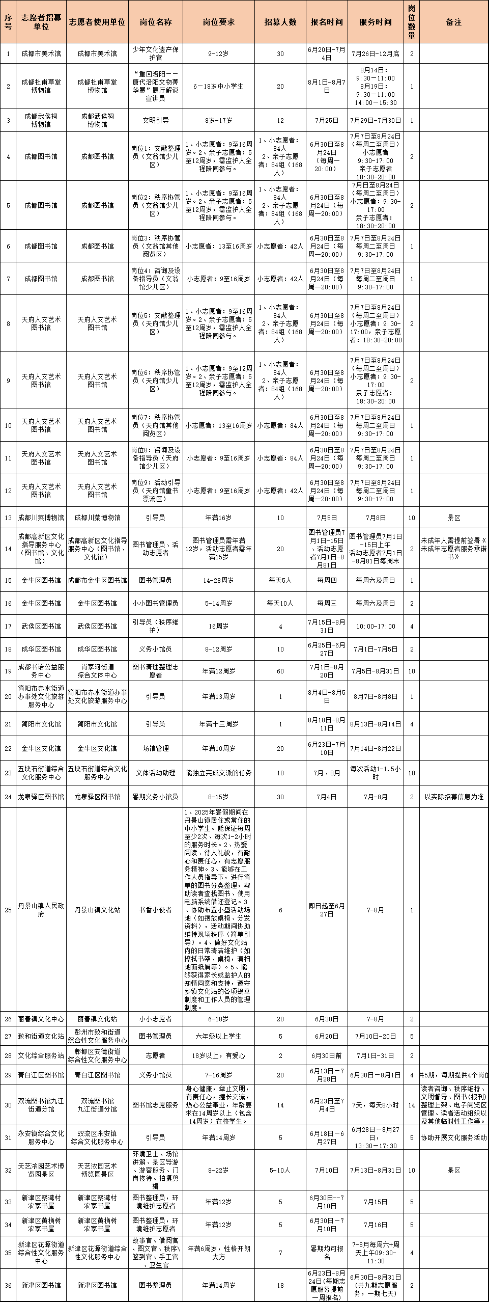 2025 年暑假成都中小学生志愿服务岗位招募公告