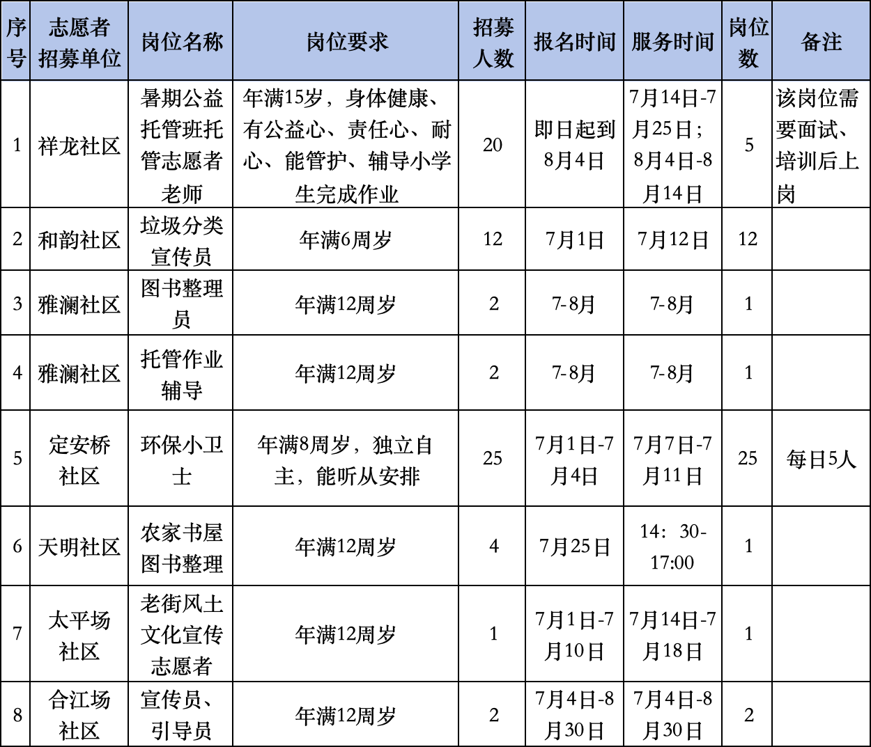 近期,成都志愿服务智慧平台(蓉群通)上线了多个适合孩子们在暑期参与的志愿服务岗位,能够让孩子们的暑假更具意义!
