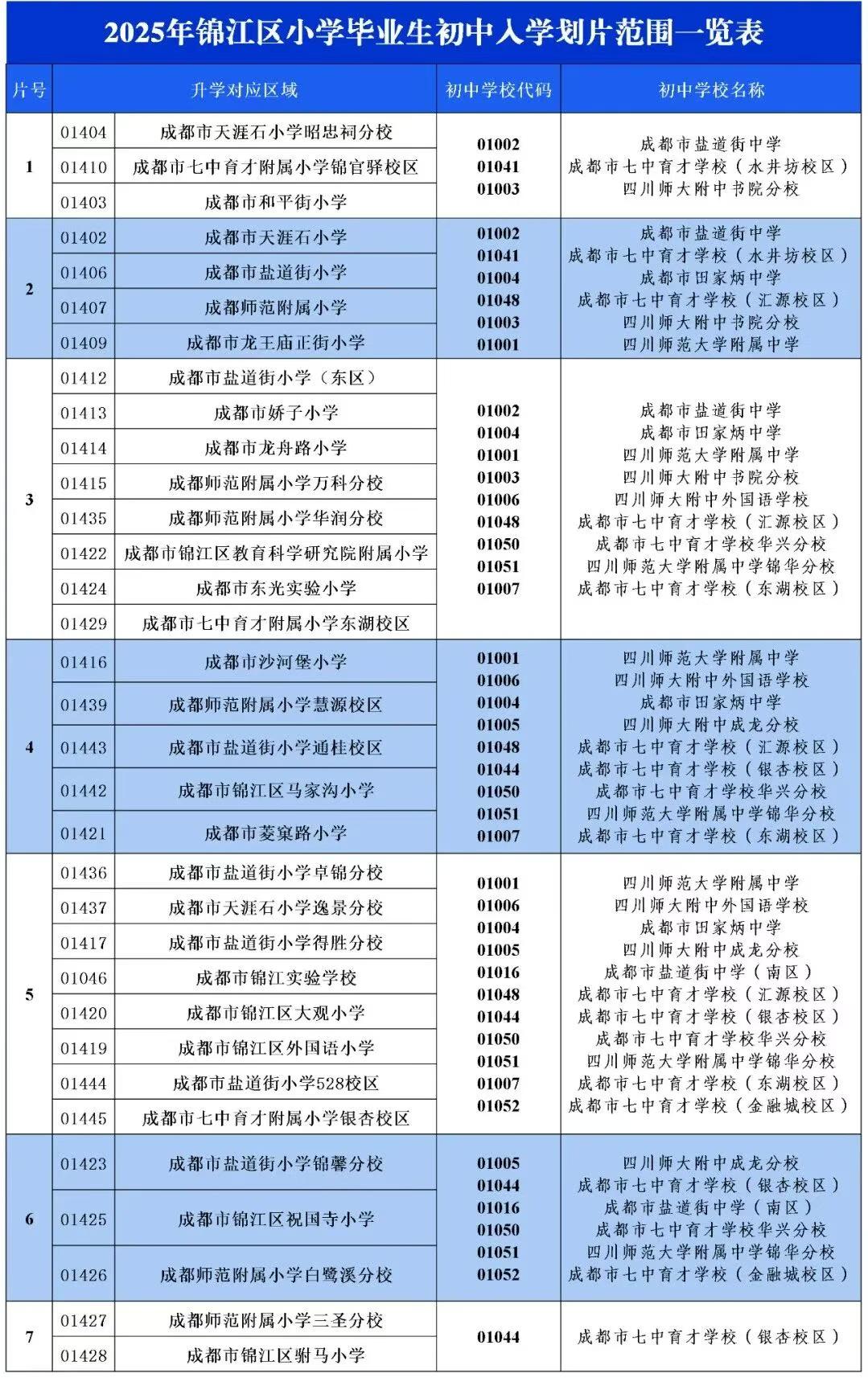 锦江区锦一到锦七小学初中学区情况!终于整理出来了