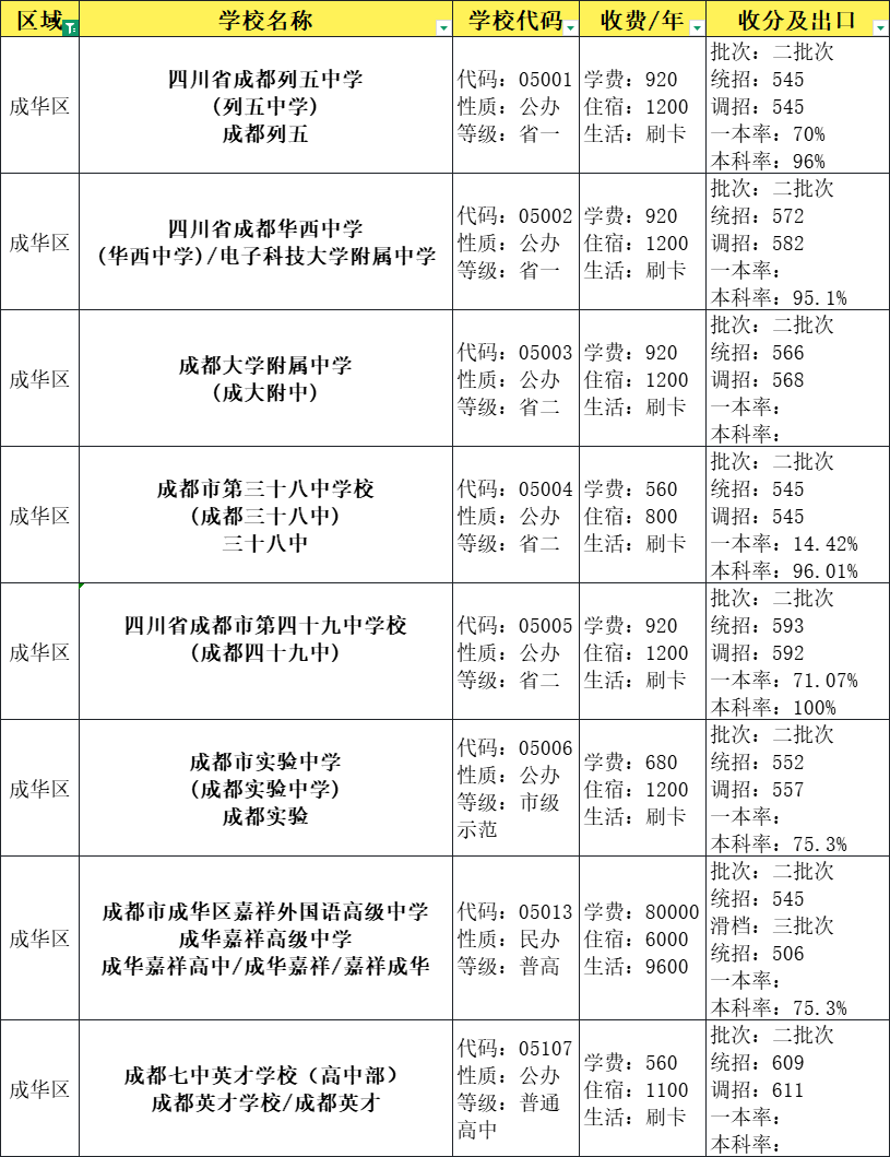 华阳中学506分,天府五中506分,成都三十八中537分。这些学校分数和普高线差不多,压线的孩子可以保底。