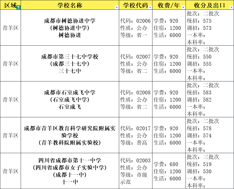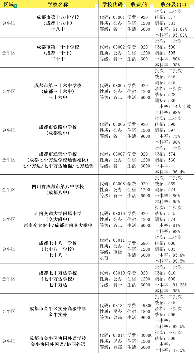 成都十八中584分,田家炳中学579分,大弯中学552分。这些学校分数接近普高线,适合成绩中等但稳定的孩子。