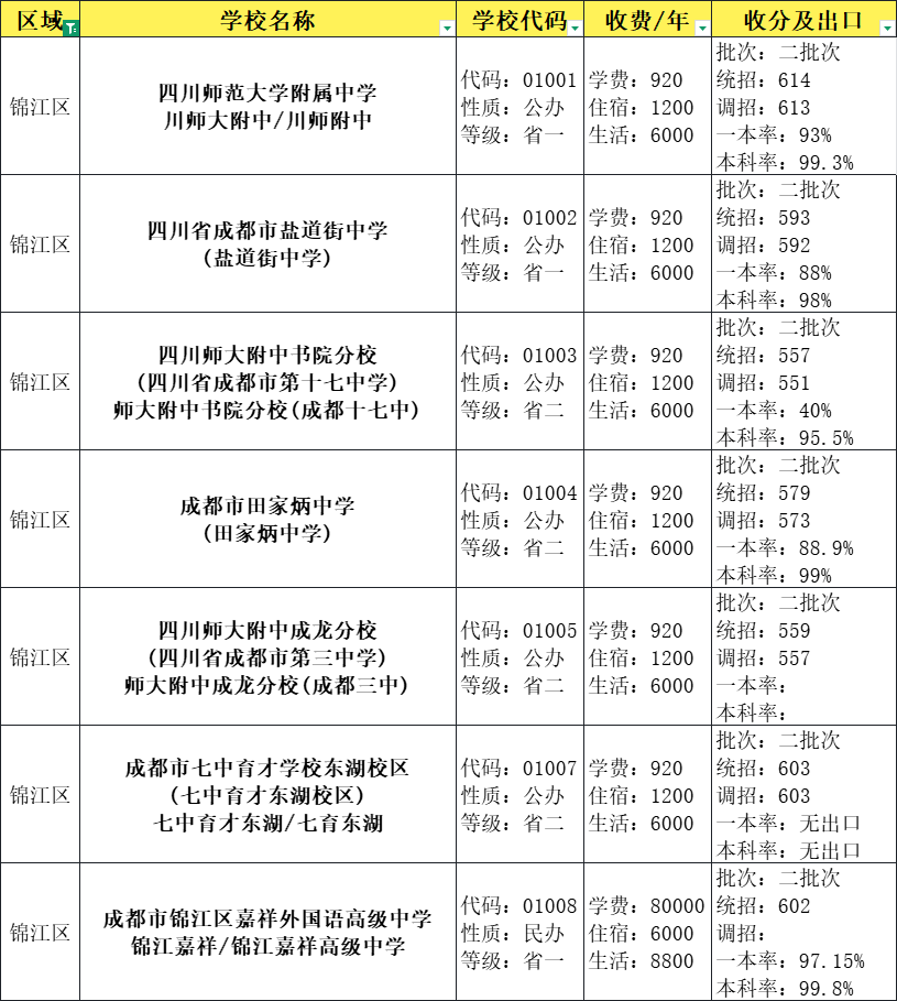 成都市锦江区高中录取分数线