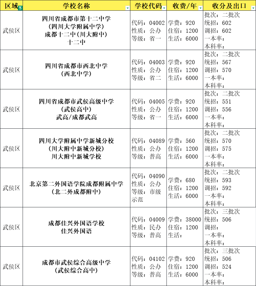 成都市武侯区高中录取分数线