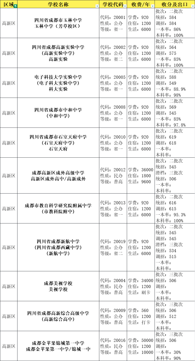 成都市高新区高中招生分数线