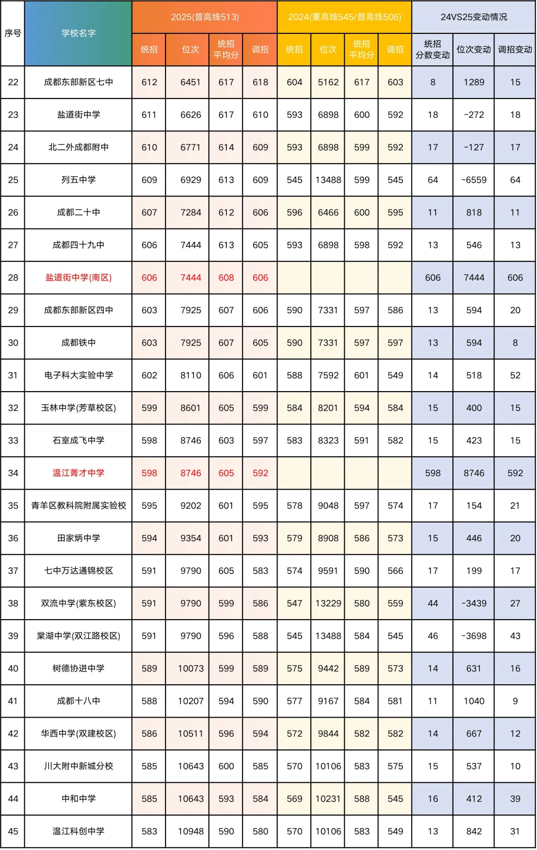 成都市近2年公办高中录取分数线及位次对比(干货版)
